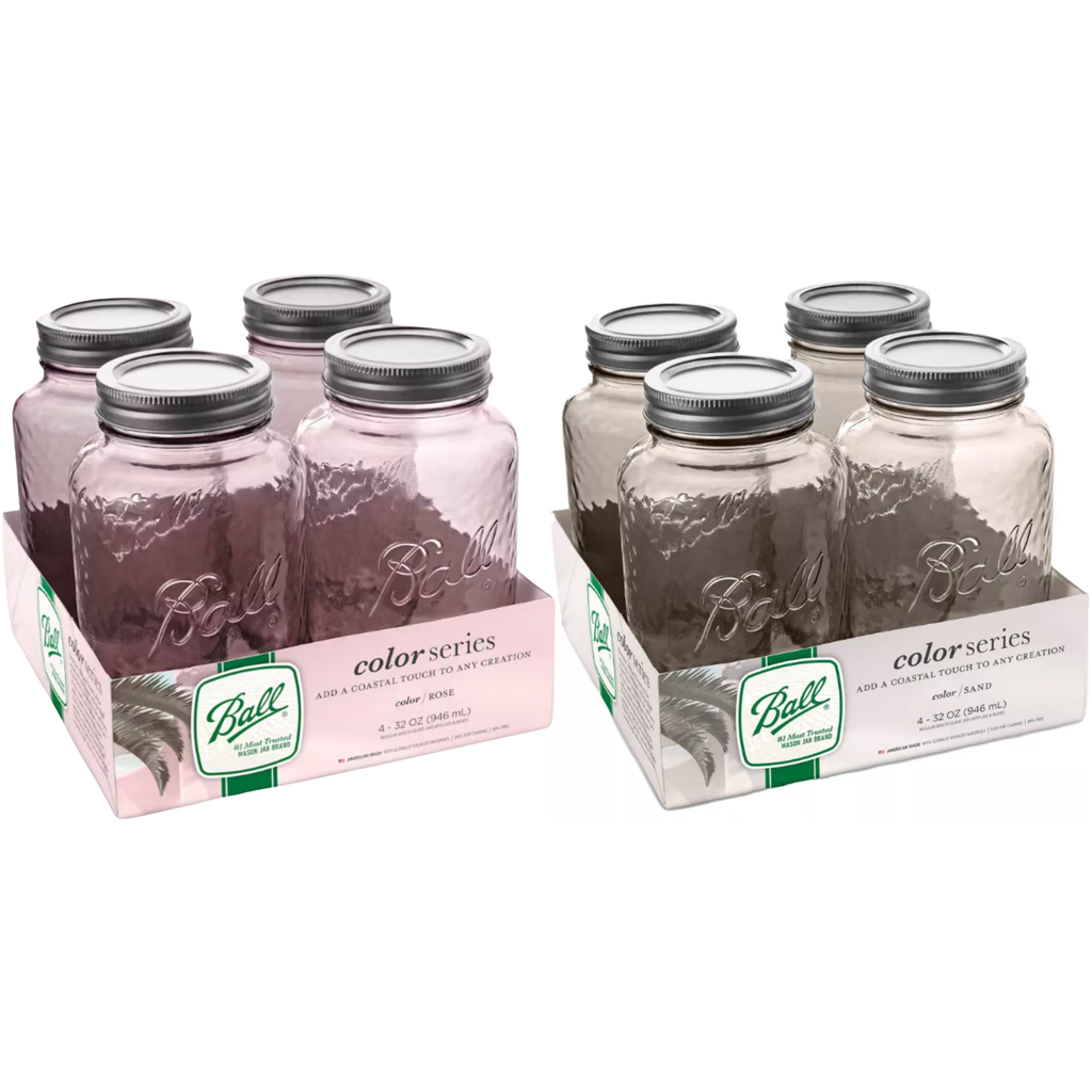 Bring the calm and beauty of the ocean into your home with Ball Color Series Jars. Inspired by the soft hues of rose, sand, and seafoam, these colored mason jars add a refreshing coastal feel to any space. Whether you’re using them as storage jars, decorative jars, or jars for gifting, these 32-oz glass mason jars are a stylish and versatile addition to your home. Perfect for organizing your pantry with quart mason jars, displaying fresh flowers in a large mason jar, or gifting homemade treats in mason jars, these quart mason jars from the Ball Color Series blend function with coastal charm. Crafted from high-quality glass, these large glass jars with lids are ideal for everything from kitchen storage to creative DIY projects. Crafted from high-quality glass and made to lock in the perfect seal with SureTight lids. Add a splash of color to your home with these regular mouth mason jars—the perfect glass containers for storage, décor, or thoughtful gifts. Elevate your everyday with the timeless beauty of Ball Mason Jars. This set includes 8 Regular Mouth 32 oz. pint canning jars with lids and bands.