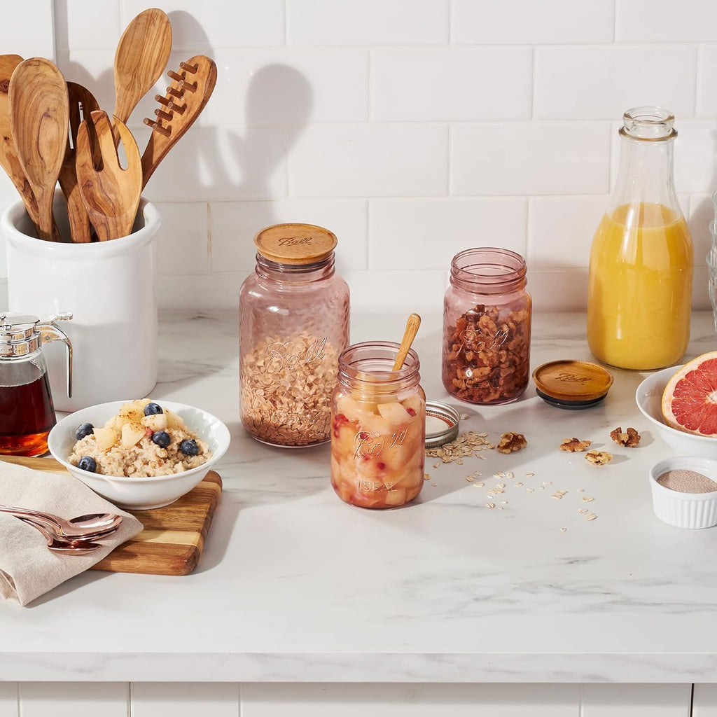 Bring the calm and beauty of the ocean into your home with Ball Color Series Jars. Inspired by the soft hues of rose, sand, and seafoam, these colored mason jars add a refreshing coastal feel to any space. Whether you’re using them as storage jars, decorative jars, or jars for gifting, these 32-oz glass mason jars are a stylish and versatile addition to your home. Perfect for organizing your pantry with quart mason jars, displaying fresh flowers in a large mason jar, or gifting homemade treats in mason jars, these quart mason jars from the Ball Color Series blend function with coastal charm. Crafted from high-quality glass, these large glass jars with lids are ideal for everything from kitchen storage to creative DIY projects. Crafted from high-quality glass and made to lock in the perfect seal with SureTight lids. Add a splash of color to your home with these regular mouth mason jars—the perfect glass containers for storage, décor, or thoughtful gifts. Elevate your everyday with the timeless beauty of Ball Mason Jars. This set includes 12 Regular Mouth 32 oz. pint canning jars with lids and bands.