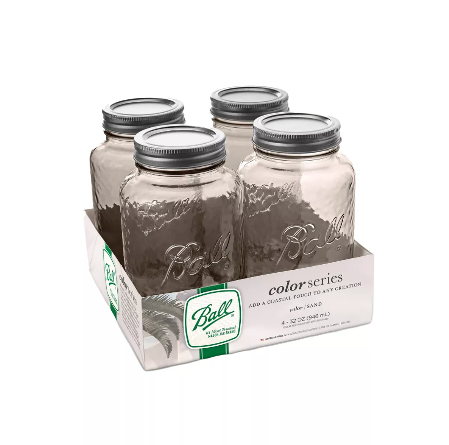 Ball Sand Vintage Glass Mason Jars, Regular Mouth, Quart Size, 32 OZ, 4-Count, Pack of 3 (12 Jars Total)