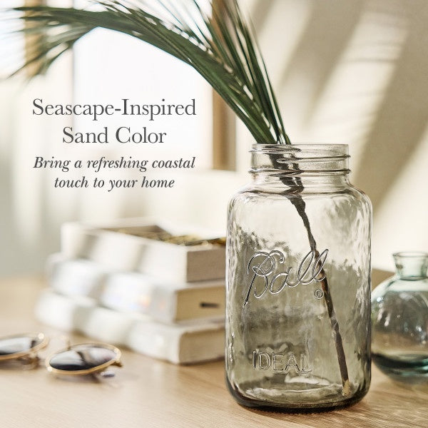 Bring the calm and beauty of the ocean into your home with Ball Color Series Jars. Inspired by the soft hues of rose, sand, and seafoam, these colored mason jars add a refreshing coastal feel to any space. Whether you’re using them as storage jars, decorative jars, or jars for gifting, these 32-oz glass mason jars are a stylish and versatile addition to your home. Perfect for organizing your pantry with quart mason jars, displaying fresh flowers in a large mason jar, or gifting homemade treats in mason jars, these quart mason jars from the Ball Color Series blend function with coastal charm. Crafted from high-quality glass, these large glass jars with lids are ideal for everything from kitchen storage to creative DIY projects. Crafted from high-quality glass and made to lock in the perfect seal with SureTight lids. Add a splash of color to your home with these regular mouth mason jars—the perfect glass containers for storage, décor, or thoughtful gifts. Elevate your everyday with the timeless beauty of Ball Mason Jars. This set includes 12 Regular Mouth 32 oz. pint canning jars with lids and bands.