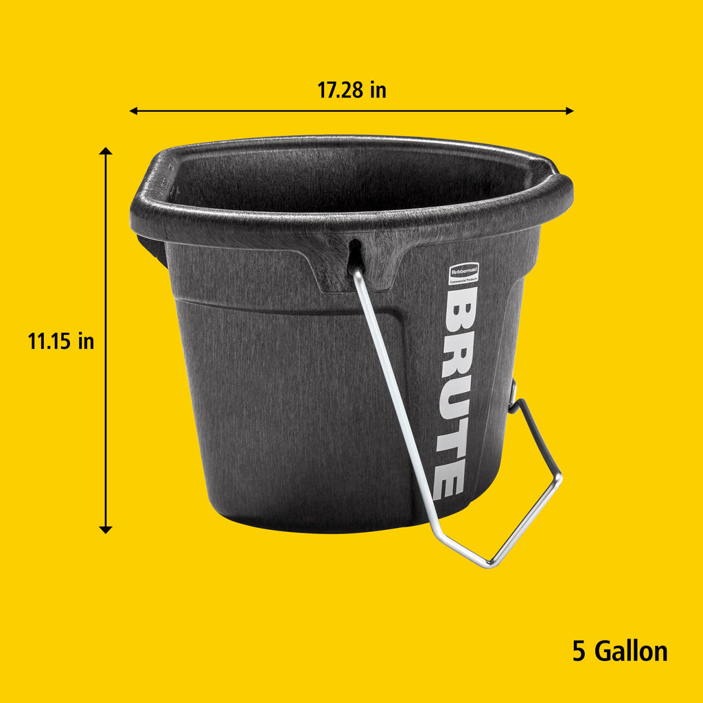 The Rubbermaid Commercial Products BRUTE 5 Gallon 3-in-1 Flat Back Bucket is built for easy feeding, and carrying, just hook it, hang it, or carry it, its flat-back design fits seamlessly on corrals and fences, perfect for on the go feeding. Made with RigidCell Construction, delivering the same durable construction as Rubbermaid Commercial Stock Tanks. Food safe and BPA-free, this Made in the USA bucket is backed by a category leading 10-year limited warranty. This bucket features inset handles to ensure animal safety while eating, while a built-in pour spout allows for easy pouring on the go.