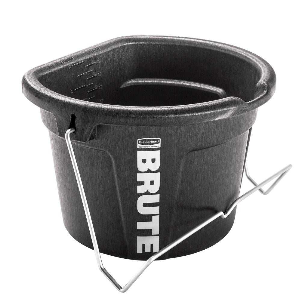 The Rubbermaid Commercial Products BRUTE 5 Gallon 3-in-1 Flat Back Bucket is built for easy feeding, and carrying, just hook it, hang it, or carry it, its flat-back design fits seamlessly on corrals and fences, perfect for on the go feeding. Made with RigidCell Construction, delivering the same durable construction as Rubbermaid Commercial Stock Tanks. Food safe and BPA-free, this Made in the USA bucket is backed by a category leading 10-year limited warranty. This bucket features inset handles to ensure animal safety while eating, while a built-in pour spout allows for easy pouring on the go.