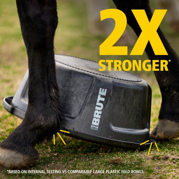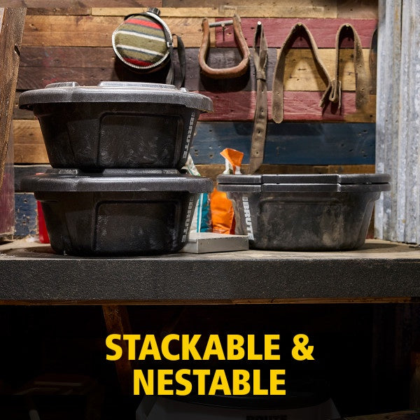 The Rubbermaid Commercial Products BRUTE 6 Gallon Animal Pan Feeder is 2X Stronger made with RigidCell Construction, delivering the same durable construction as Rubbermaid Commercial Stock Tanks. Designed for comfortable handling, built-in grips make carrying easy, even with gloves. Stackable and nestable feeder simplifies storage and feeding prep whether full or emptFood safe and BPA-free, this Made in the USA bucket is backed by a category leading 10-year limited warranty.