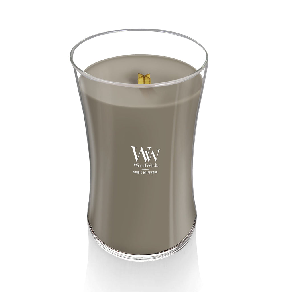 Large Hourglass Woodwick Candles fill your home with the soft crackle and inviting scents and a natural wooden wick that Crackles as it Burns. The soothing crackle of a WoodWick candle is created by a patented PLUSWICK Innovation technology, designed to ensure a safe and consistent crackle experience for faster fragrance and a better burn while fragrancing your home with the soothing sound of a crackling fire (4.0" x 7.0")