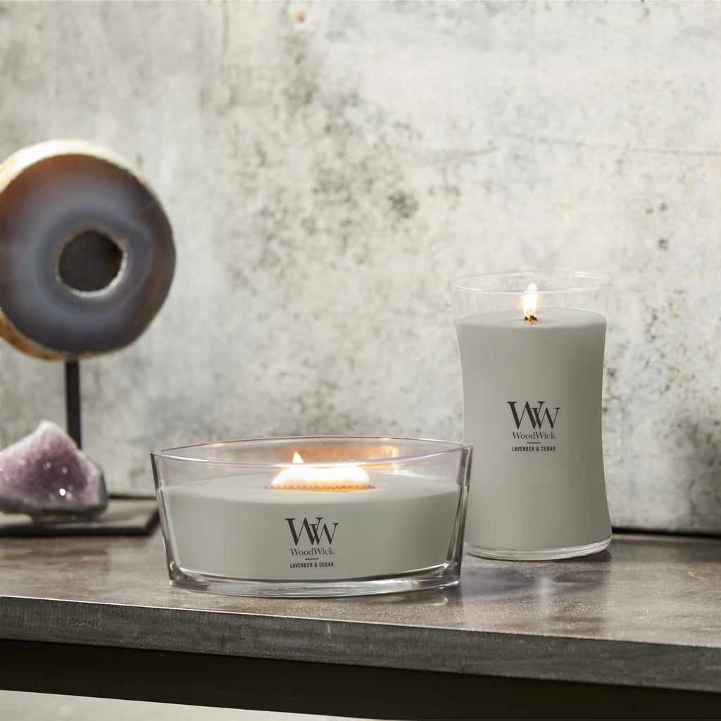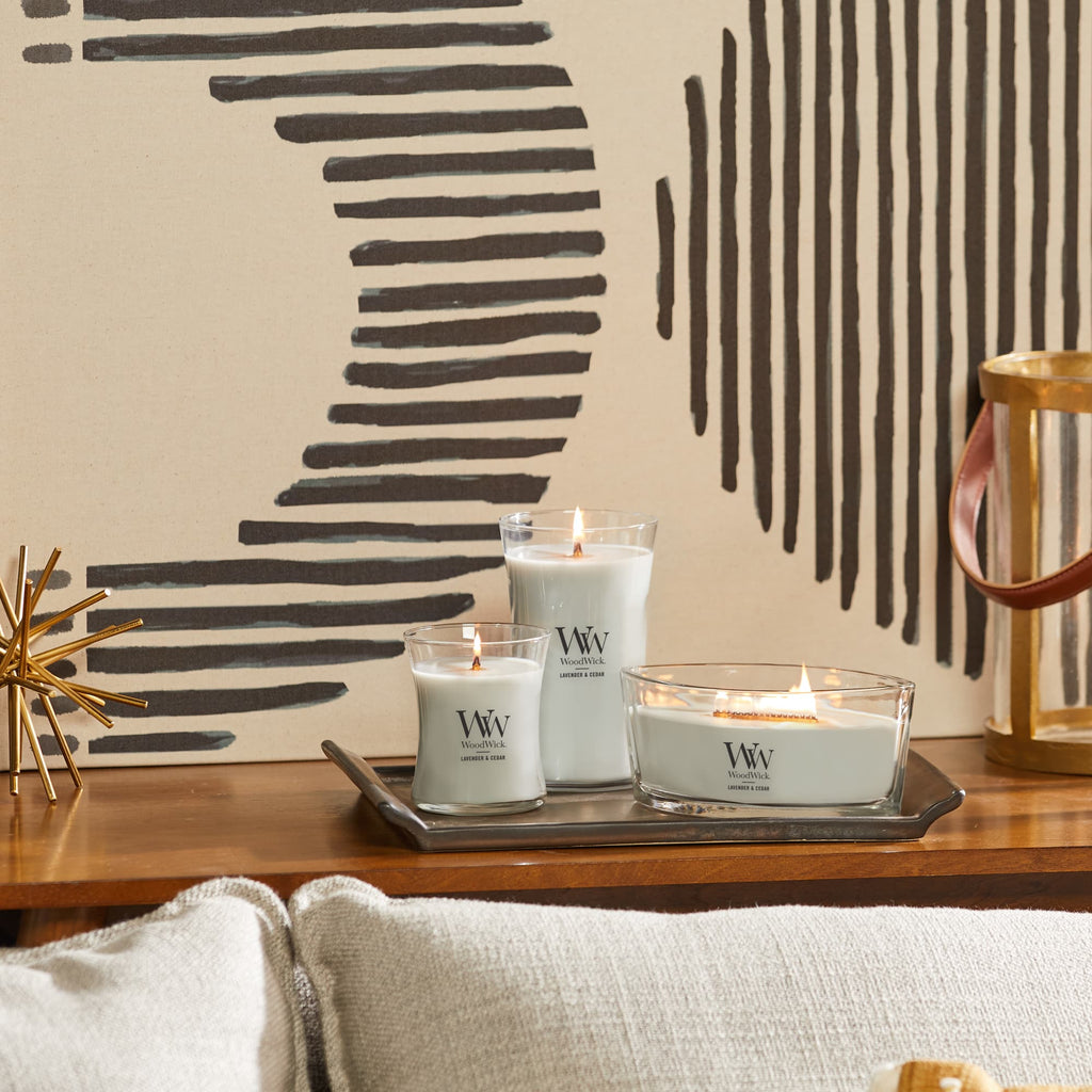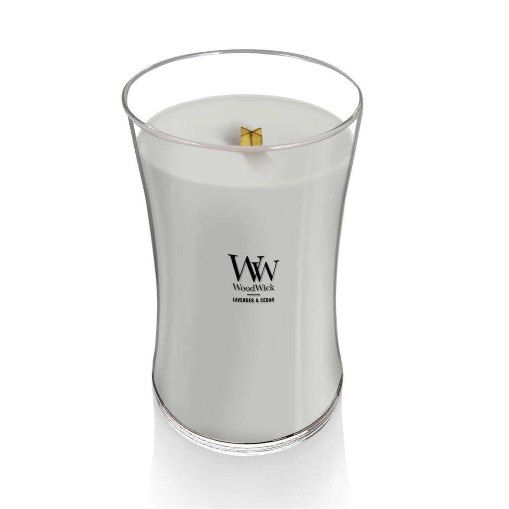 Large Hourglass Woodwick Candles fill your home with the soft crackle and inviting scents and a natural wooden wick that Crackles as it Burns. The soothing crackle of a WoodWick candle is created by a patented PLUSWICK Innovation technology, designed to ensure a safe and consistent crackle experience for faster fragrance and a better burn while fragrancing your home with the soothing sound of a crackling fire (4.0" x 7.0")