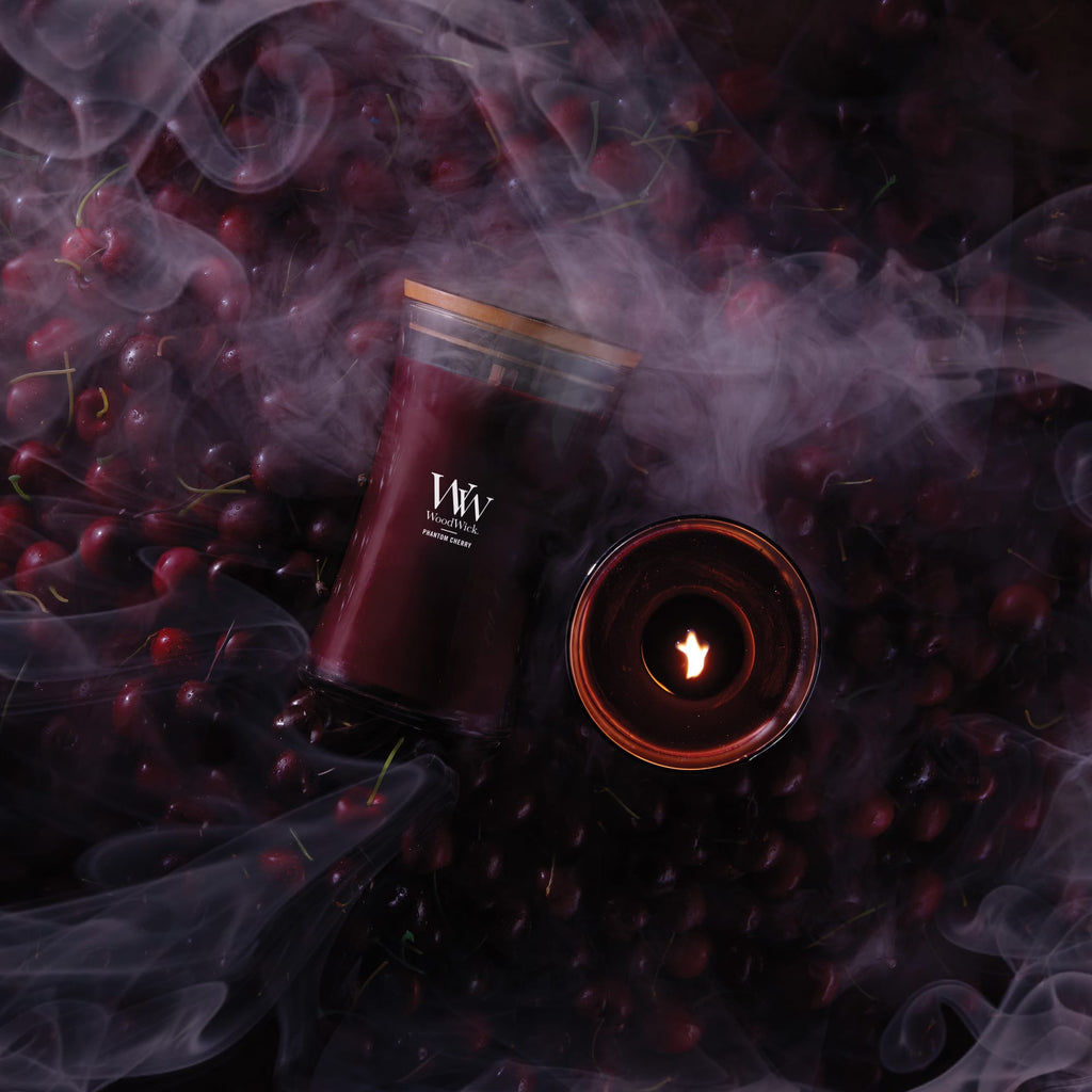 - Phantom Cherry: Scents of dark cherry, amberwood, cashmere, and smoked vanilla