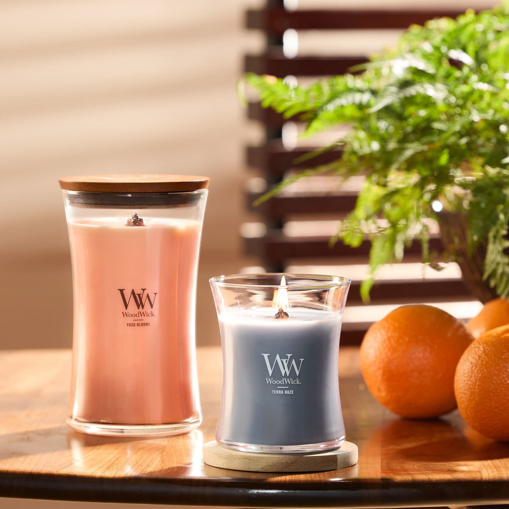 Medium Hourglass Woodwick Candles fill your home with the soft crackle and inviting scents and a natural wooden wick that Crackles as it Burns. The soothing crackle of a WoodWick candle is created by a patented PLUSWICK Innovation technology, designed to ensure a safe and consistent crackle experience for faster fragrance and a better burn while fragrancing your home with the soothing sound of a crackling fire.
