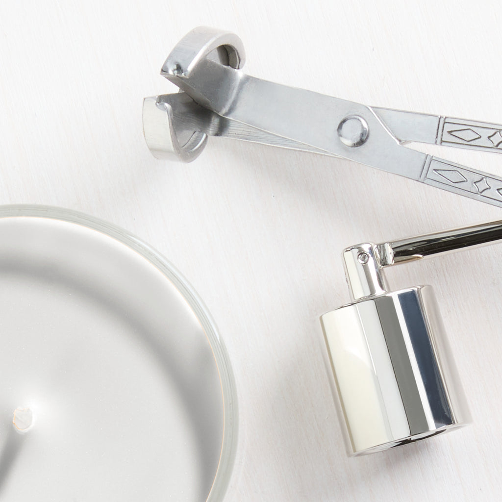 - Brushed silver-tone lid protects wax from dust and debris in between burns