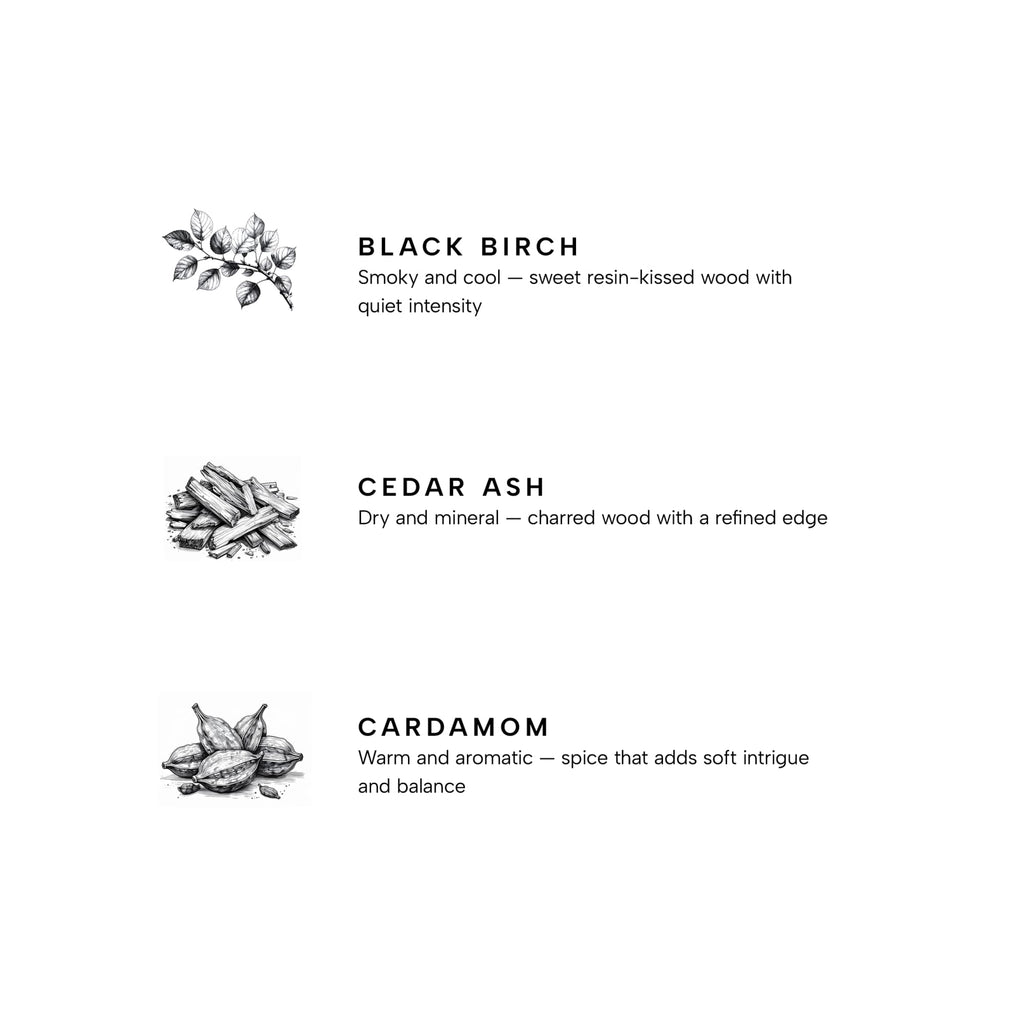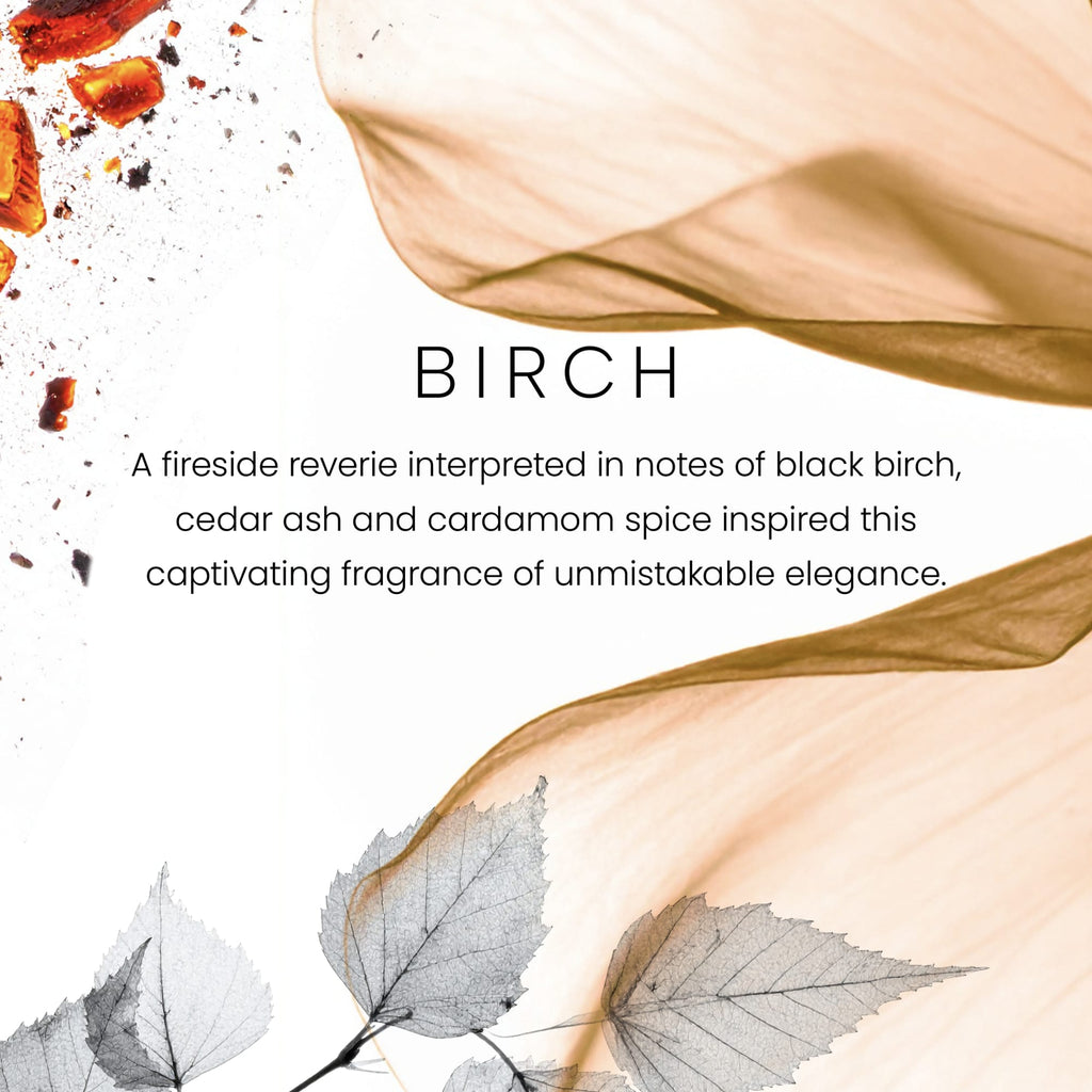- Birch: A fireside reverie interpreted in notes of black birch, cedar ash, and cardamom spice inspires this captivating fragrance of unmistakable elegance. Black Birch · Cedar Ash · Cardamom