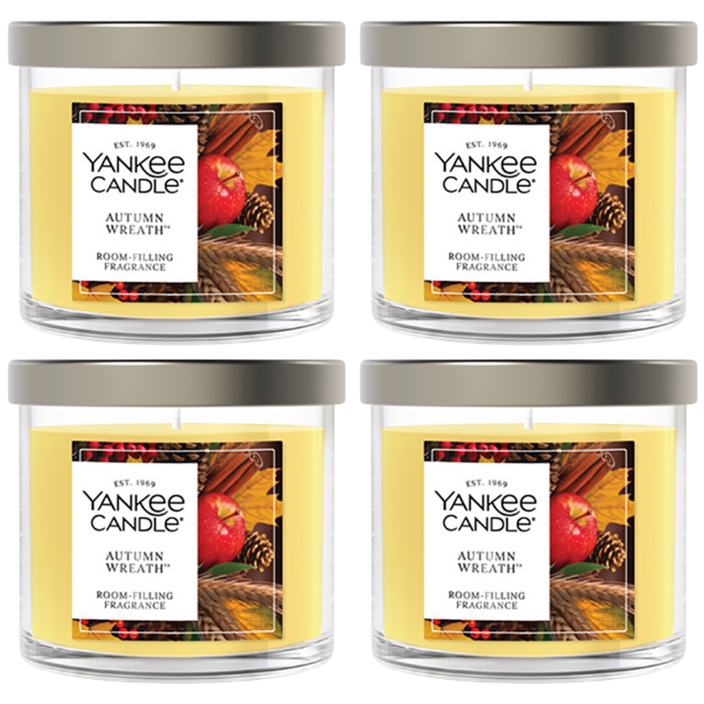 - Autumn Wreath: Fall spice and apple notes create a cheerful welcome to your relaxing home. Woody notes in the base add extra warmth and charm to a hearth decorated with colorful gourds and autumn leaves
